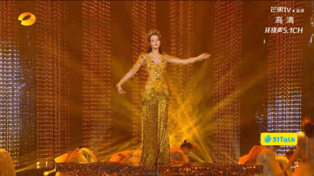 此外,节目组真的不能放弃让女神自己走出来的设置吗?礼服那么长,又不能手提着,迪丽热巴明显走得有点小心翼翼。而且走动后的就定位置,礼服也没法呈现最佳展示状态,这些都有伤金鹰女神仪态的呢,哈哈。