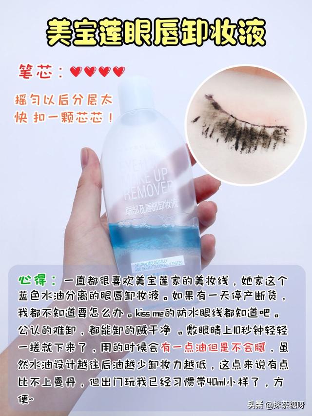 心得:一直都很喜欢美宝莲家的美妆线,她家这个蓝色水油分离的眼唇卸如果有一天停产断货了我都不知道要怎么办。kiss me的防水眼线都知道吧,公认的难卸它都能卸的贼干净,敷眼睛上10秒钟轻轻一搓就下来了,用的时候会有一点油但是不会腻,虽然水油设计越往后油越少卸妆力越低,这点来说有点比不上曼丹,但出门玩我已经习惯带40ml小样了,方便。