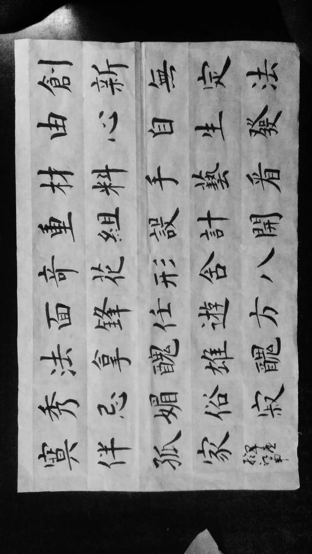 创新基与继承,指我们学习书法首先要熟练前人百留下的笔法、黑法、结字法章法等。你要创立一种新字体,不可能完全抛弃前人的已取得的经验方法,古人说,用笔千古不变,结字因人而异,所以你的创新不可能完全没前人的影子。至少前人的笔法不能全部扔掉吧?