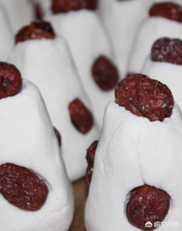 步骤三:加入红豆和红枣,开始捏面团。形状看个人喜好。
