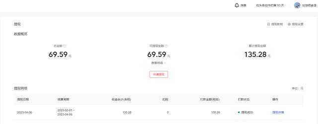6、这个月头条达到了体现的门槛,还是很惊喜的,那不得抓紧时间提出来,135.28