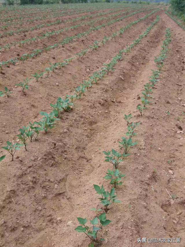 要选好薯苗,最好自己育苗,育苗要选3-5两无病、无残、优质的脱毒原种用腐熟的牛马粪做底肥,再加上100克硫酸铵,提高薯苗的质量和数量,选好薯种用温水浸种,水温在51-54°为宜,浸十分钟捞出晾干备用,排种要平排,过去咱育种一般都是斜排,那为什么现在要平排呢?因为平排比斜排出芽齐、芽壮、均匀整齐等优点,排好种覆膜保墒保温。待苗长到6-7节时除膜炼苗,必须要炼苗,炼苗能提高栽苗的成活率,当苗高25-30公分时及时剪苗移栽。