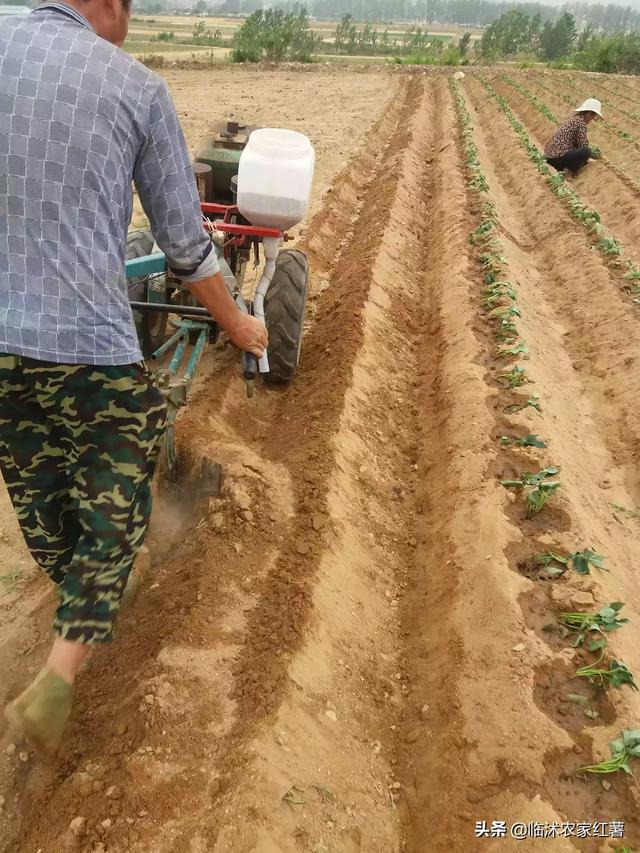 其次就是最好在底肥的选择上最好能够重施有机肥或者发酵腐熟好的农家肥!然后再上硫酸钾复合肥每亩地100斤!最好选择用犁子犁地的方式既深耕一遍!在起陇种植的时候如果说家里有草木灰,最好能在栽红薯的窑窝里放一些!在栽红薯秧子之前要进行,对红薯根部要进行沾根处理,既把红薯秧子的根部在稀释好的防治地下害虫的农药和芸苔素内酯的溶液中浸泡一会!