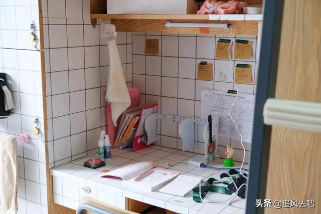 女儿的大学寝室,4人一间,上床下桌,有衣柜,有个小阳台,独立卫生间,热水淋浴器,一年住宿费1400元。运气比较好,她们班头天报到的都分到了没独卫的楼栋,她第二天报到本班没寝室了,就分到3班的楼栋,索性把班也调到3班,现寝室只住了3个人,活动空间比别人要大。