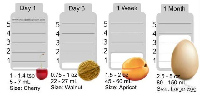 最后说到每餐奶量,这个除了和孩子食欲意愿有关外,还和孩子的胃容量发育有关。出生时胃容量约7ml,4天40-50ml,10天80ml,以后每月增长25ml,一岁末到250-300ml。一岁内胃容量可以如此估算:30+30×月龄(ml),所以5月龄婴儿约180ml。所以每餐喂养量到180ml都没问题。
