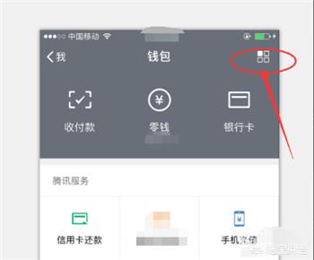 2.点击钱包,然后进入到钱包界面,点击右上角的方格符号,如图: