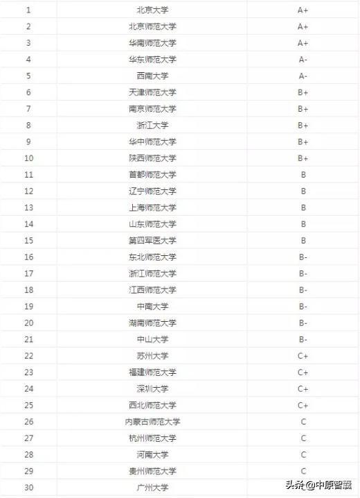 排名前30位心理学类院校榜单。
