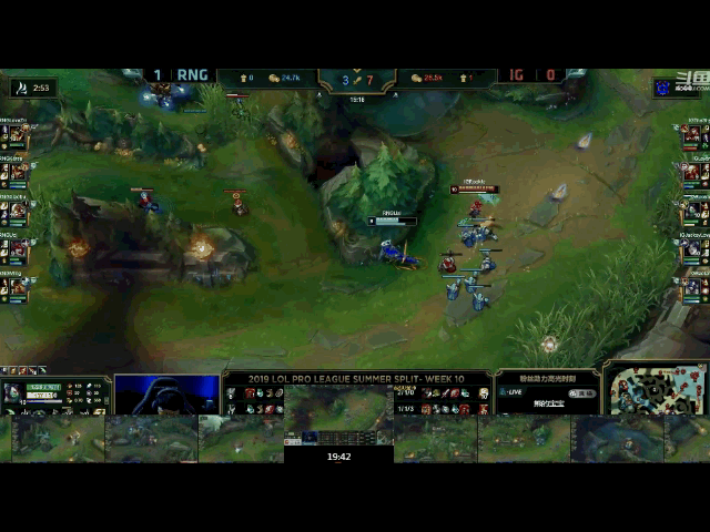 2019年8月10日LPL,IG在客场迎战RNG战队,但是遗憾的是在打满三局的情况下输掉了比赛。这也给IG在接下来的比赛中增加了不小的难度。想进入季后赛必须在接下来的比赛中赢下两场。