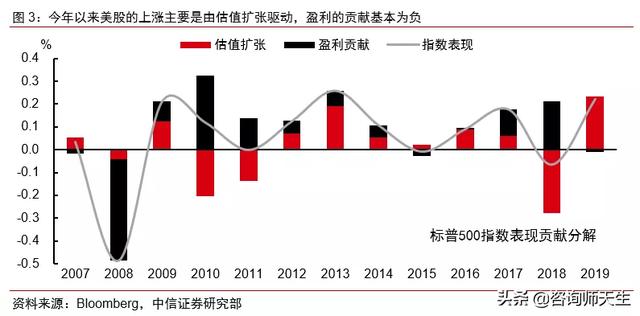 而经过计算,美股由于估值扩张带来的市值上涨达到了100%,而盈利扩张则是负数