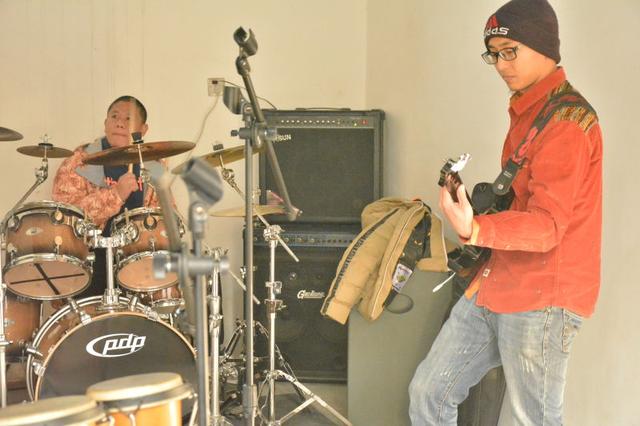 我从高一开始接触吉他,那时候只是一把100块不起眼的吉他,每天抱着吉他乱弹,没有一点思路,也没人教,然后看看视频,学会怎样去认识吉他谱,第一首歌就是老男孩,学会了过后真的好激动,但是F和弦还有些困难,每天放学就抱着吉他弹,晚上睡觉之前也抱着吉他弹,后来接触了电吉他,突然好喜欢那种金属感,又自学了电吉他,主要弹Beyond的歌曲,因为比较喜欢,电吉他刚开始不知道怎样弹五和弦,也是看了视频,后来才知道DO,SO之间的关系!闷音,SOLO!贝斯,架子鼓都是自学的,后来发现很多手法错误很多,现在已经改正了。现在我是乐队的一名主音吉他手!加油吧,只要热爱,没有什么不可能!
