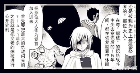 这是目前一拳超人原作最新漫画115话里面的剧情,我们知道音速索尼克和闪光的弗莱士都是出自忍村当中,他们就是一个杀手集团,而他们之中曾经有一个最强的王者,他是这个忍村的创始人,曾经在15年前和爆破的战斗之中昏迷,现在终于恢复过来,想要找到变老的爆破准备干掉,这家伙也是有备而来,想要干掉爆破,估计实力还是有的,所以小爱把他作为可能抗衡琦玉的最终BOSS的人选之一。(不过这家伙刚出来就遇到琦玉,估计没有时间变强,被琦玉秒掉的可能性更大。)