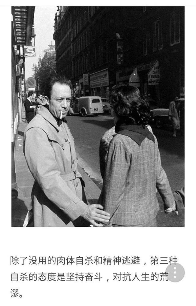 19,除了没用的肉体自杀和精神逃避,第三种自杀的态度是坚持奋斗,对抗人生的荒谬。