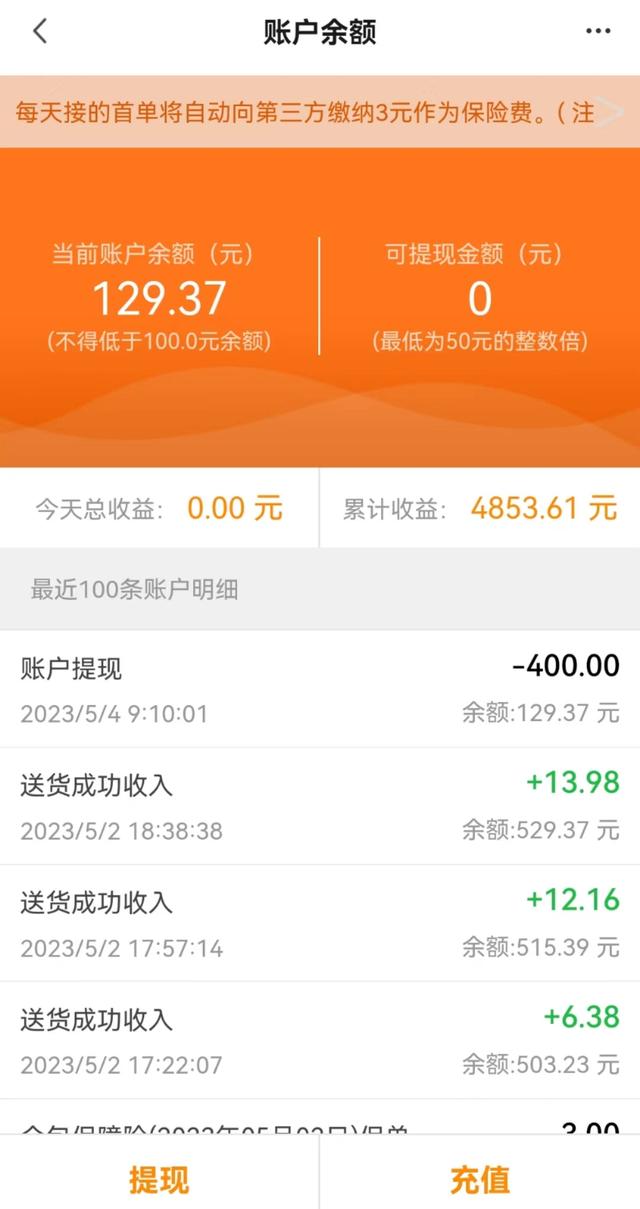 - 3、UU跑腿干了41单,收入314.6。这个月跑腿比较拉胯,没怎么干,主要是新加入的师傅太多了,兼职干的抢不上单,平均一个小时才15,就没怎么干。大家应该也看到了,这段时间都在讨论外卖不好送了,单价低,距离远,还抢不到单。