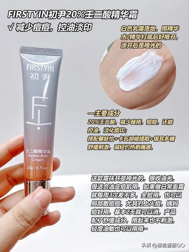 每周1-2次用酸疏通毛孔,减少黑头闭口,经常长痘备多一个祛痘膏或壬二酸,比如初尹20%壬二酸乳霜,浓度膏,难推开但抹开哑光,全脸用建议每周3次,控油+收油光,局部敷红肿大痘,姨妈痘上火痘等长痘就用,基本2天按下去。