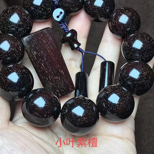 小叶紫檀重量重,例:普通的小叶紫檀2.0手串一般在60-65克左右,65克以上就算是密度比较好的,当然也有密度相当好的小叶紫檀能达到70克以上,这种高密度的小叶紫檀是比较少见的。