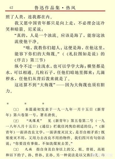 2、愿中国青年都摆脱冷气,只是向上走,不必听自暴自弃者的话。