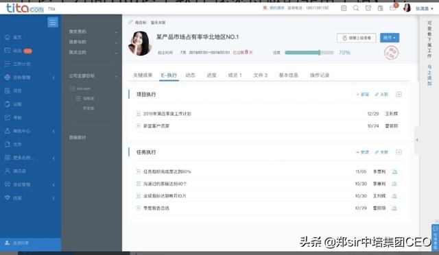 在这个方面Tita这个软件我觉得做的非常不错,它将OKR和KPI在软件中巧妙的结合了起来,你在目标下可以看到你任务的总个数和完成量,帮你及时调整方向,下面是我的事例