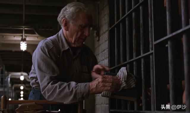 老布伦一出狱相当于被社会抛弃了,有一个细节就是他喜欢养鸟,经常把鸟放在衣服内兜。然而最终鸟死了, 获得自由之后死的,象征着老布伦的结局。