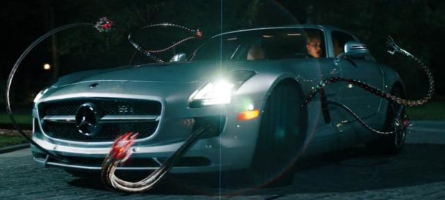 声波在变3里变形为一辆银灰色奔驰SLS AMG跑车