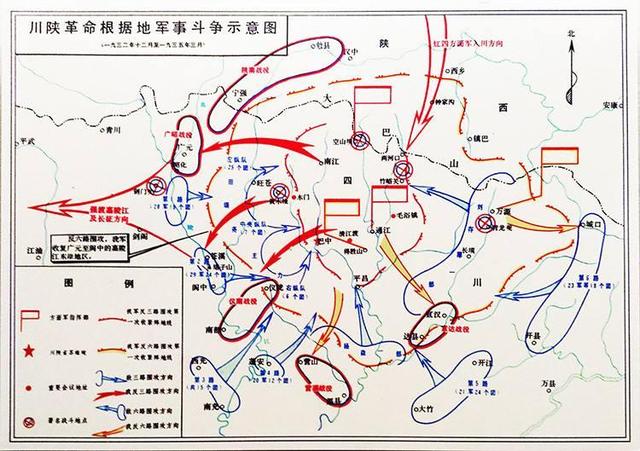 1932年10月,红四方面军沿平汉路西进,过陕南城固西、翻越巴山,于同年12月底到达川北通江,开创了川陕革命根据地。而此时,红四方面军只辖4个师,约1万5千人。
