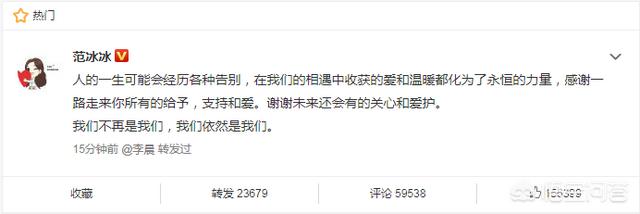 才经过宋仲基和宋慧乔的离婚宣言,接踵而至的就是范冰冰27日在微博发文宣布与李晨分手,“我们不再是我们!”。