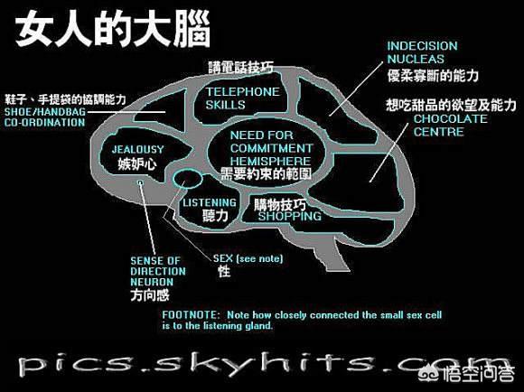这是从结构生理上来看待的第一差别。其次的差别就是大脑左右部分掌管功能差异在男女中的体现。