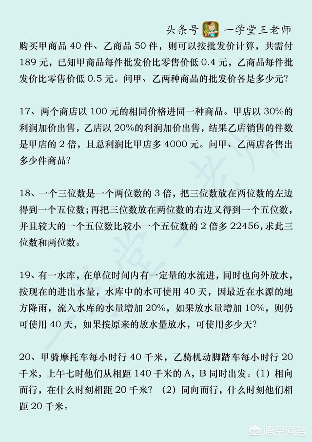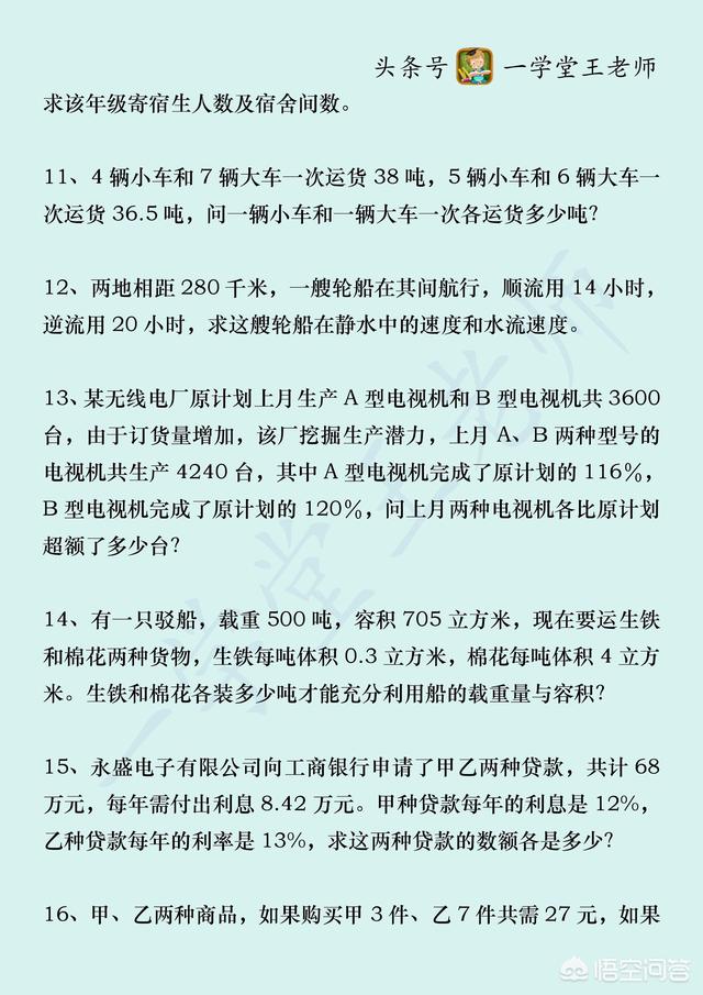 建议你好好巩固下一元一次方程组知识点。学习任何知识点都是一样的,学会了就要去多用,多接触不同题型。下面分享两个例题及练习题,供您参考!我是王老师,致力于数学方面的新农商网!
