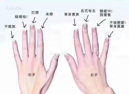 在这么重要的场合,大家不要弄错啦!下面沐沐分享几张如何戴的以及各个手和手指代表的意义,借各位小伙伴借鉴。