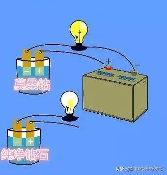 莫桑石对光是双折射,天然钻石是单折射。莫桑钻和天然钻石的内部结构不同,使得导电不一样,莫桑钻能导电,大部分钻石不能导电,钻石越纯净越绝缘,也就是越不导电。
