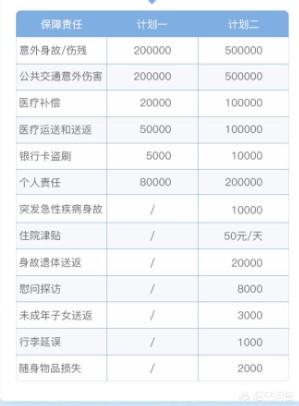 行李延误、物品丢失:长途旅行,需辗转多次,如果行李被延误,会对旅游的体验感大打折扣,但有一点经济补偿也会让自己开怀不少。如果随身物品因遭受抢劫、盗窃和因任何第三方责任而遗失或损坏的,都可以得到赔偿。