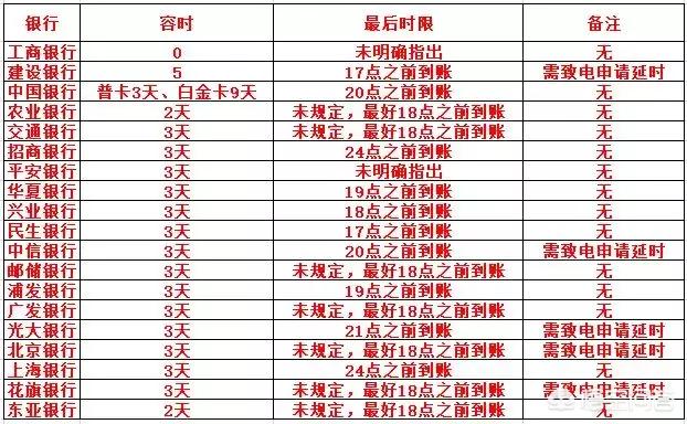 下图是各大银行的容时容差服务(工商银行目前大部分信用卡都有三天的容时和10块钱以内的容差)