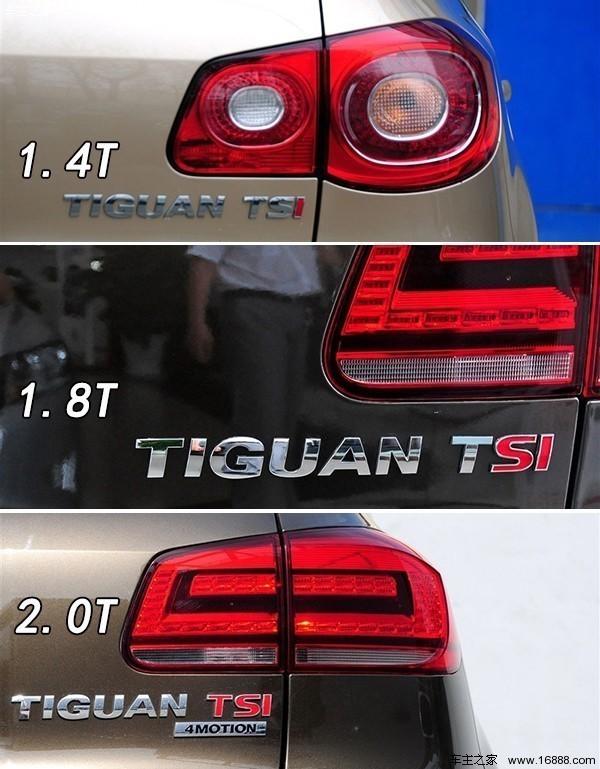 后来大众应用了将尾标TSL三个字母进行不同程度的标红,来表示发动机排量的动力。那么TSL又是什么意思呢?在国外TSL是Twincharger Stratified Injection,就是双增压(涡轮增压和机械增压)分层喷射技术。而到了国内,一般认为T代表涡轮增压,S代表燃油直喷,并没有燃油分层技术。因为国内燃油的油品一般,还达不到分层喷射的要求。TSI,TSI,TSI这几个不同的标红,简单地讲,就是排量不同。相对应着1.4T,1.8T,2.0T。(图中的TIGUAN就是指大众的途观了。)