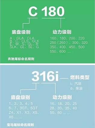 排量命名是较老的尾标命名方式,在这方面,奔驰和宝马正做的不亦乐乎。在距今40多年以前,宝马确定用数字命名不同型号的车型尾标后,尾标的后两位代表了引擎的排量,但岁着涡轮增压发动机的兴起,这样的命名方式也略显屈才,于是后两位数字演变成了“排量+动力等级”的命名方式。