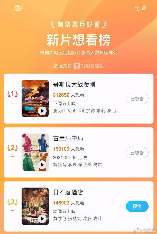 据灯塔专业版数据显示,电影《古董局中局》淘票票想看人数突破15万大关,目前位列五一档已定档影片想看人数TOP1!淘票票新片想看榜国产电影TOP1!