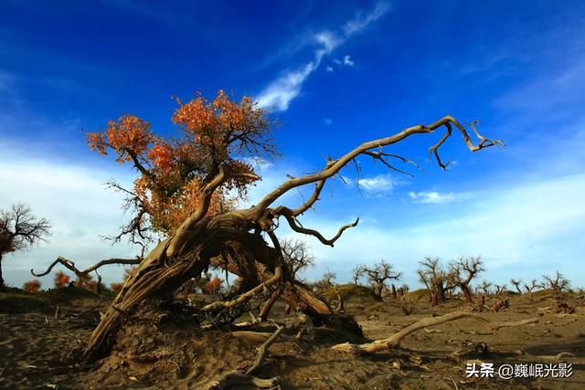 还有哦,每年秋天,九月底到十月中旬的金色秋天, 那漫天飞舞的金黄树叶绝叫你为之震撼!额济纳胡杨树魅力尽展,一夜寒露会骤然把整片的胡杨树全部染黄,景色实在迷人,你会感到你是明星在《英雄》里面红衣飘飘的决战之地,你会感到诗意的魅力,你会感叹天地,你油然会萌发出浪漫的情感,原来人世间竟然还有如此飘逸美好的地方!记住吧,这地方还是必须去的……
