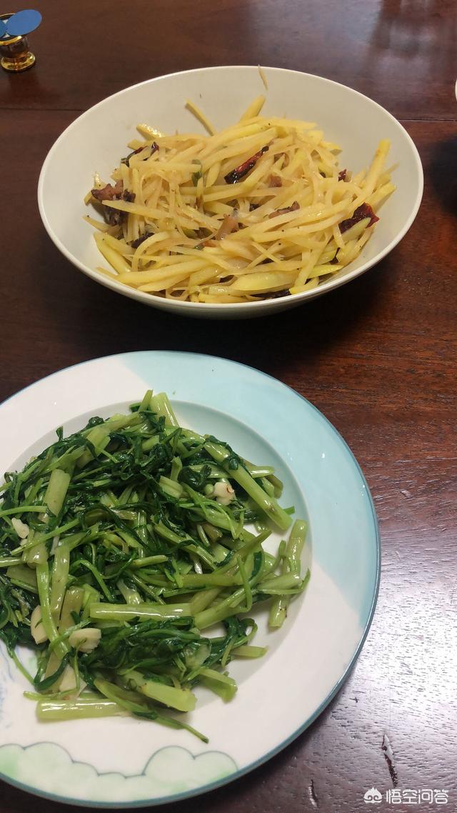 周末在家做饭一荤一素一汤,两个人吃,蔬菜会少做点,一顿吃不完就扔掉,一般都能吃完。再有钱对食物不能浪费。