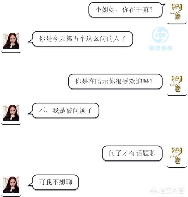 这个是时候你肯定心里有疑问,老师我也经常这样跟女生说话,可是简单的问了几个女生就不理我了,甚至有些就直接拉黑我了,你这样问女生问题,不就是查户口么,谁不会?