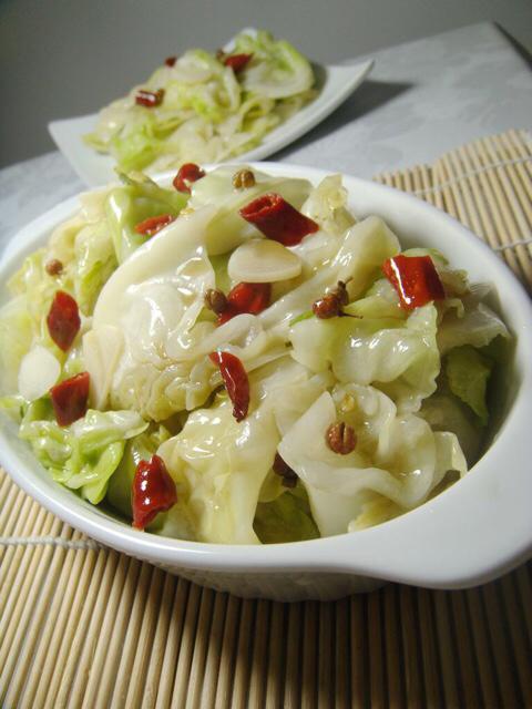 卷心菜、蒜、干红辣椒、盐、味极鲜酱油