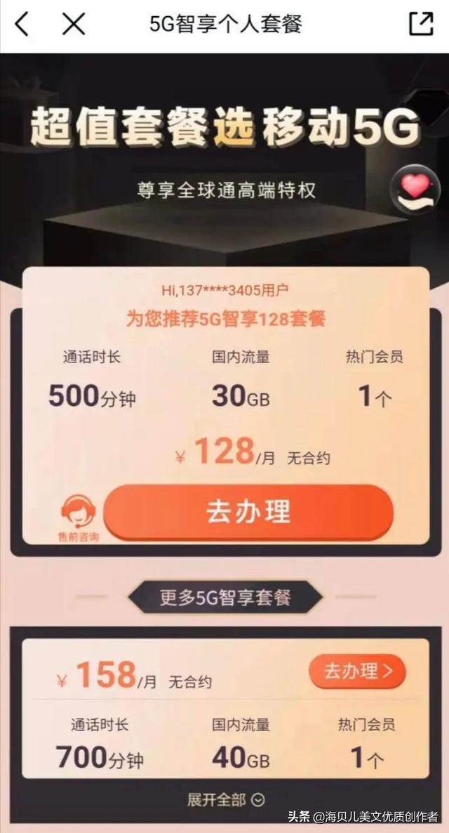 中国移动在APP上线5G智享套餐个人版,中国移动2021年5G套餐价格表