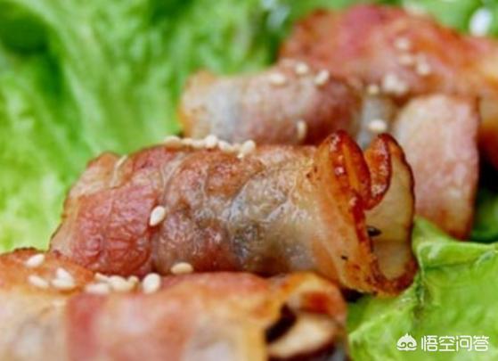 培根是一种烟熏猪肉,西餐菜比较常用,老外吃早餐时喜欢煎几条培根来吃,但培根很咸,吃太多会使人摄入过多盐分,对身体健康不利。同时烟熏肉或烤肉会产生致癌的苯并芘,所以培根不宜多吃。常见菜式有培根金针菇卷。