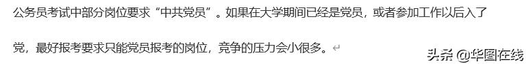 四、政治面貌。公务员考试中部分岗位要求“中共党员”。应届考生中,党员比例相对较少,因此竞争可能较小。