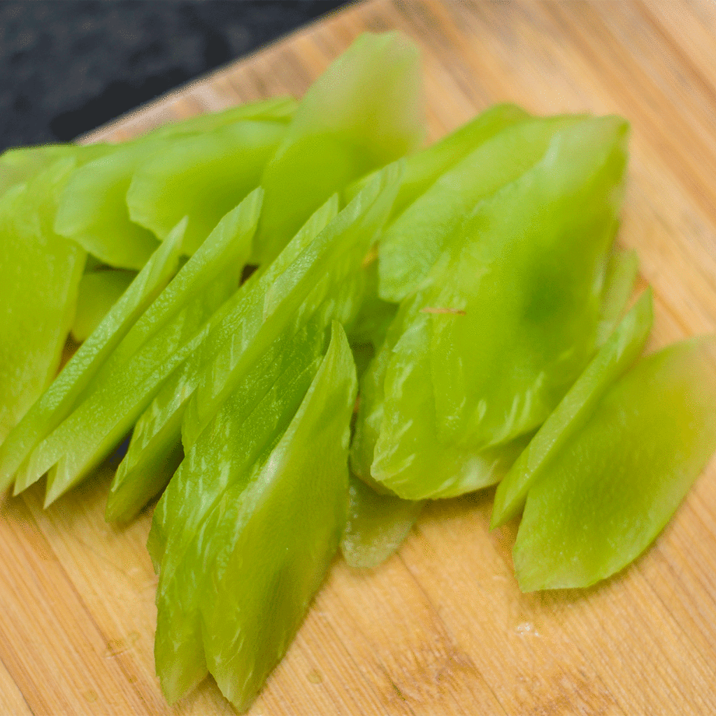 虾仁放盐和料酒腌制片刻,莴笋洗净切片,锅里烧水加一点油,莴笋焯水后过凉。