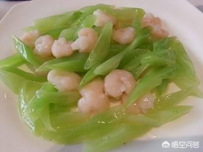 另起锅烧油,下入虾仁翻炒片刻后加入莴笋及适量的盐和料酒翻炒均匀即可装盘。