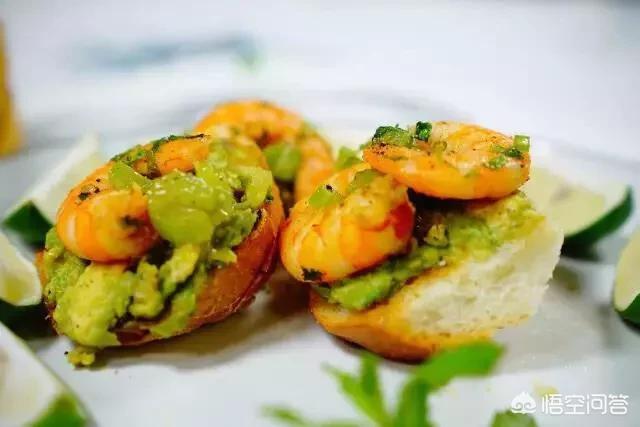 牛油果虾仁包,是壹周君前几日看牛油果的吃法时被种草的,据传是加拿大白领们最常吃的健康午餐搭配,做法蛮简单。需要准备的食材主要有牛油果、虾仁和面包片,以及半颗柠檬作配料。 牛油果要搅成泥,再挤入柠檬汁拌匀后抹在面包片上,虾仁夹在其中就可以了,条件允许的话可以小煎一下虾仁,味道会掺杂些焦香。