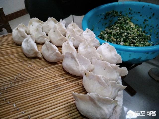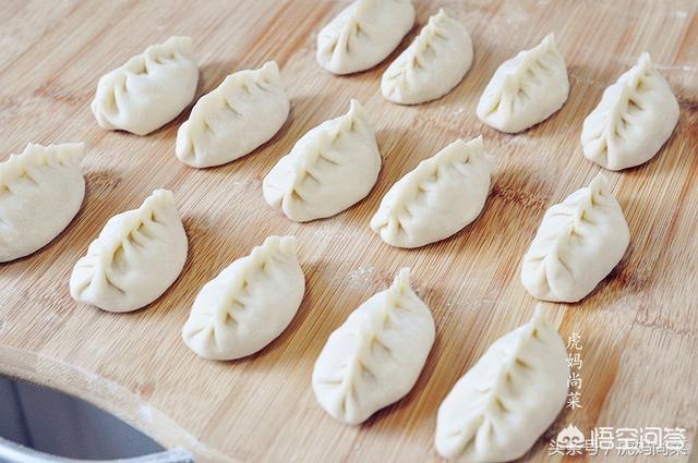 包好的饺子,排放时底部要沾点干面粉,防止粘面板。