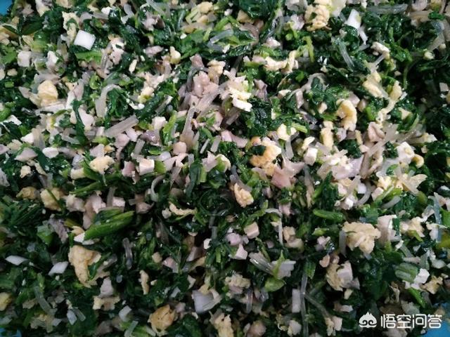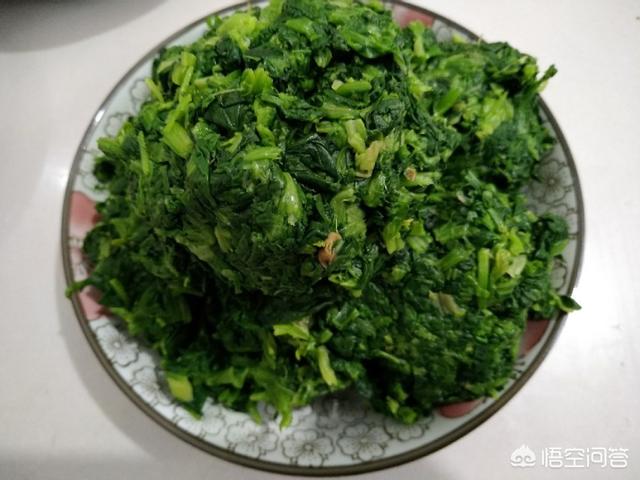 1、准备菠菜,春天的菠菜非常嫩,将菠菜烫熟剁碎备用。