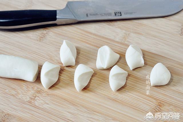将醒好的面团取出到面板上,揉匀后整成稍细的长条状,然后左右滚动着切出同等大小的面剂子。