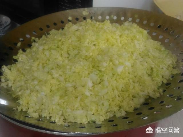 6;圆白菜洒盐剁碎控干水分加入盆里