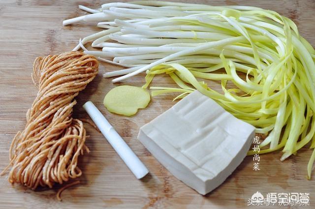 饺子馅料:韭黄110克,豆腐70克,馓子50克;