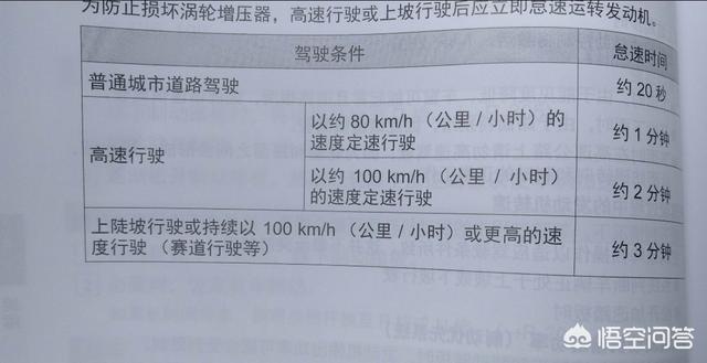 对于不带涡轮延时散热系统的车辆,其随车手册会有提示:为防止损坏涡轮增压器,高速行驶或者上坡行驶后应让发动机怠速远转。可以看出来,城市内行驶后应该怠速运转20秒,高速行驶根据工况需要怠速运转1-3分钟。